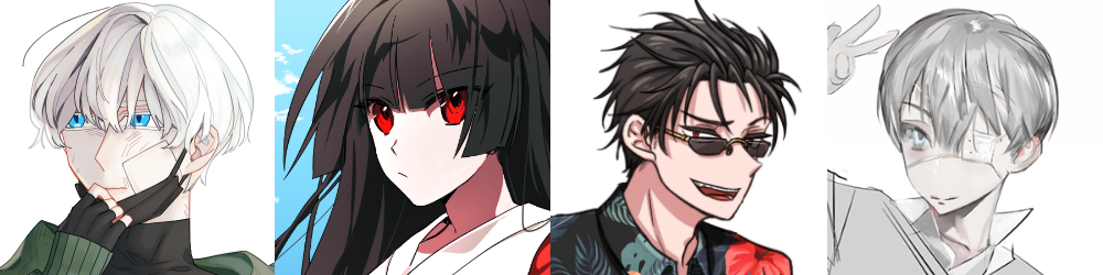 PC1은 티츄... 제가 맡았고, PC2는 말토님, PC3은 자캉님, PC4는 스광오님께서 맡아주셨습니다. 핸드아웃 배부 받고도 본 세션 날짜까지 시간 텀이 여유롭게 있었던지라 편하게 편하게 캐릭터메이킹을 했어요. 그리고 대망의 당일. 완성된 PC 전원의 포트레잇 모음.