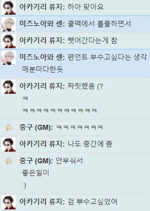 아진짜 고통의 연속이었다 진짜로요 아 다시 생각해도 너무 힘들다 극지없이 11라운드나 가서 힘들었다기보다는 자캉님께서 하시는 모든 RP 류지의 모든 대사가 진짜 힘들었어요(좋았습니다 더해주세요 저랑 많이많이 세션해주시기예요)